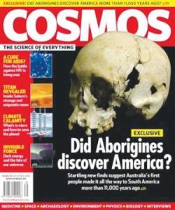 Le titre de l’édition d’octobre / novembre 2010 du magazine Cosmos et la ligne d’accompagnement, augmentée d’une photographie d’un crâne américain (Luczia) présentant une morphologie qui ressemble étroitement aux aborigènes australiens.